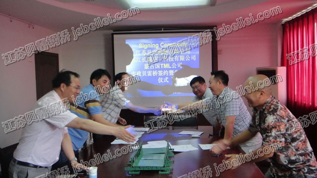 2013年7月9日,我公司聯合鎮江長城重工與蒙古國TML公司簽訂300米特大貝雷鋼橋供貨合同。