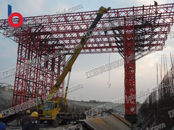 當(dāng)桁架用作主梁時(shí),使用中間兩個(gè)孔作為橋梁時(shí),使用端部?jī)蓚(gè)孔,以加強(qiáng)兩排桁架之間的聯(lián)系;風(fēng)構(gòu)孔用于連接抗風(fēng)拉桿;端豎上的支撐孔用于安裝支撐、斜撐和連接板;下弦?jiàn)A具孔用于安裝安裝橫梁夾具。下弦?jiàn)A具上有4塊,用于安裝橫梁夾具具。下弦?jiàn)A具上設(shè)有4塊,需要用于提升26千克;如果需要提升26千克,則需要提升手臂;如果需要提升手臂之后需要提升手臂。由桁架單元、桁架銷、端柱、強(qiáng)化弦桿、桁架螺栓、弦桿螺栓等組成。桁架單元(白色框架)和桁架銷榆架單元:由上下弦桿、豎桿和斜撐焊接而成。上下弦桿的一端是陰頭,另一端是陽(yáng)頭,陰陽(yáng)頭上有銷孔。當(dāng)兩個(gè)桁架拼接時(shí),將一個(gè)陽(yáng)頭插入另一個(gè)陰頭,對(duì)準(zhǔn)銷孔,插入銷孔。桁架各孔用于組裝雙層或強(qiáng)化橋梁時(shí),將桁架螺栓或弦梁時(shí),將桁架螺栓或弦螺栓插入弦螺栓孔中,使雙層榆架或布架與強(qiáng)化弦連接;支撐孔用于安裝支撐架。